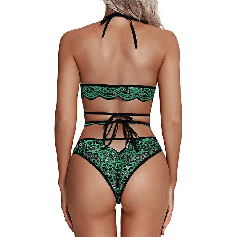 Sexy Criss Cross Contrast Color Flower Lace Bra Panty 2 Piece Set Underwear Women's Intimate Lingerie