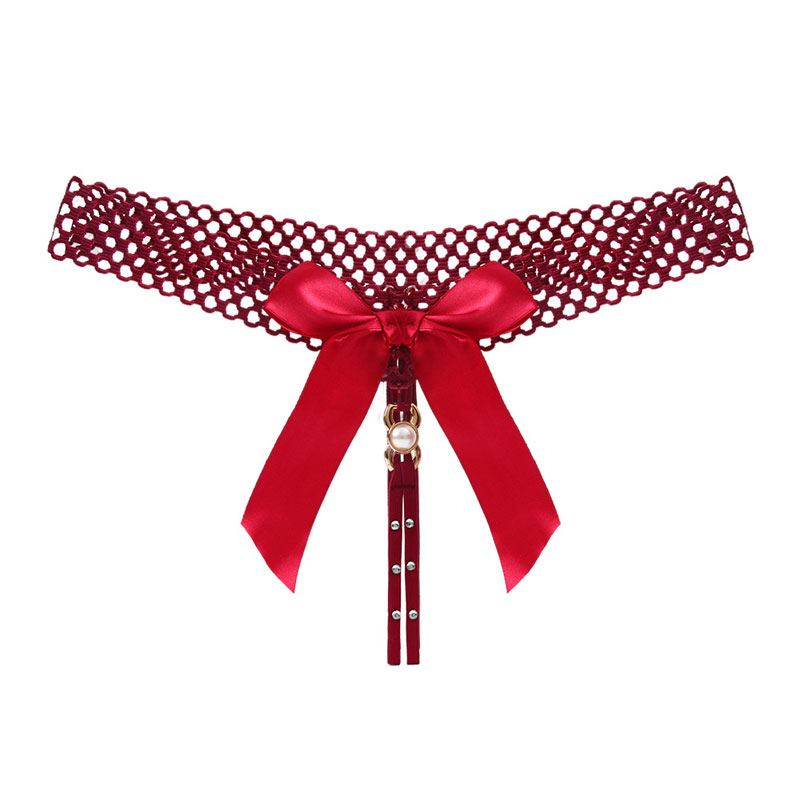 Sexy Hollow Belt Bowknot Crotchless Buckle Underwear Slutty Underpants Seamless Naughty Briefs Low Waist G-string Thong T-Back Lingerie