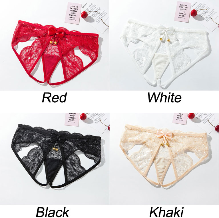 Sexy Backless Bell Bowknot Women's Underwear Thong T-Back Lingerie Slutty Underpants Lace Hollow Crotchless Panties Naughty Briefs