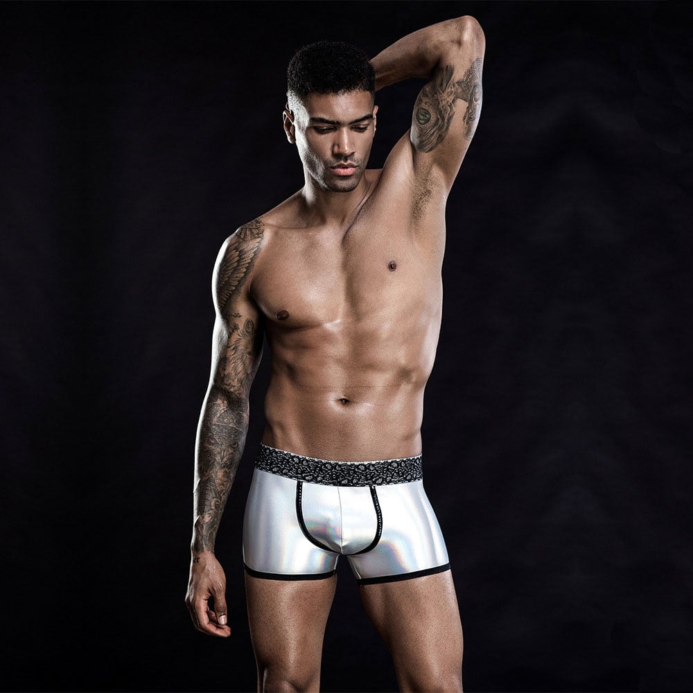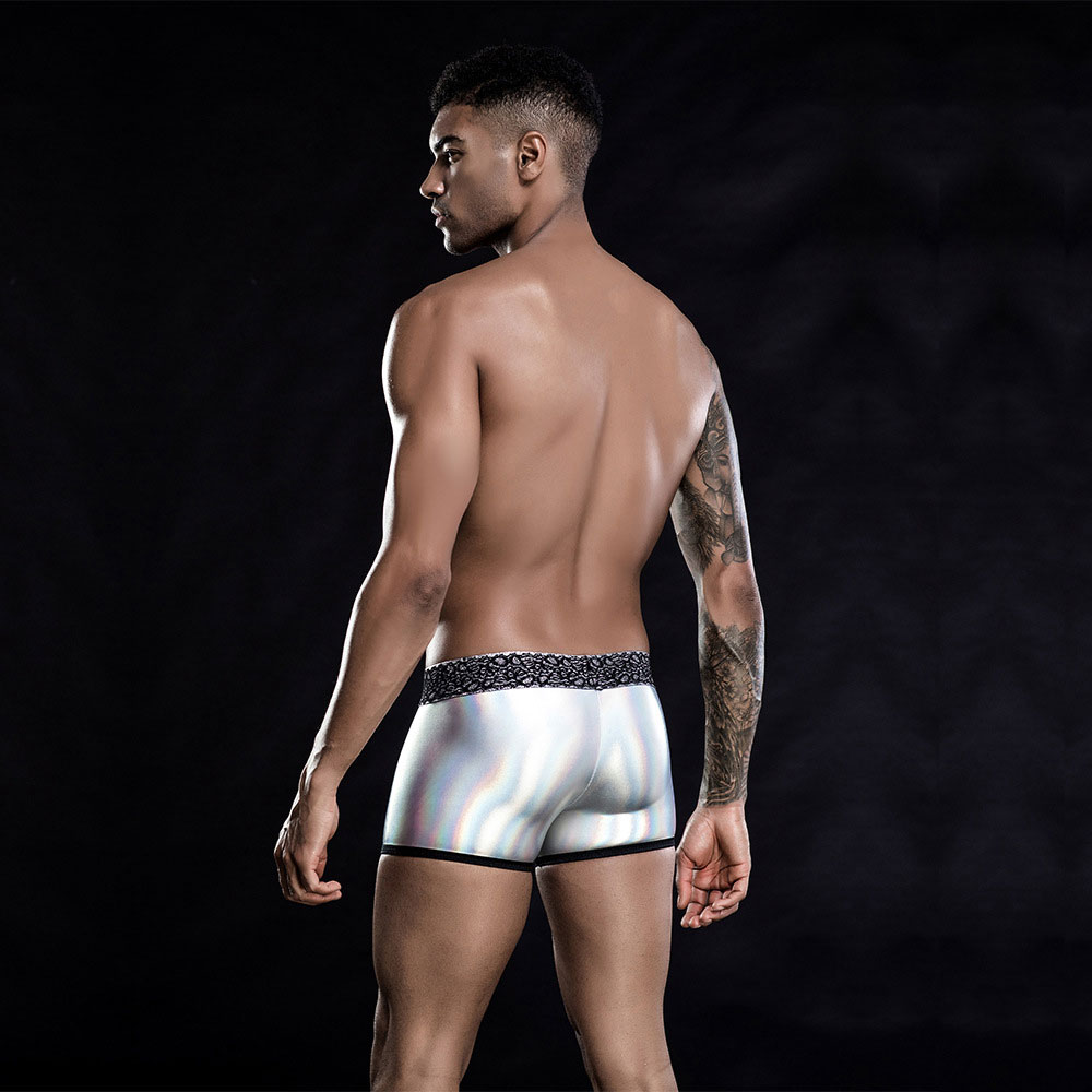 Sexy Silver Laser Bar Boxer Brief Lace Underwear Elasticity Lingerie For Men