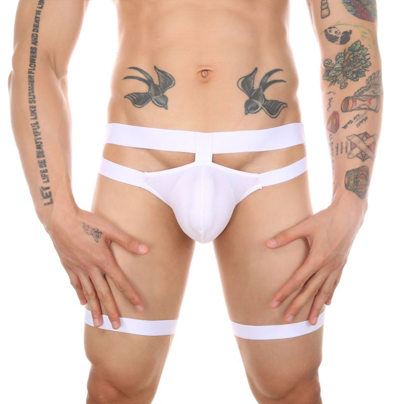 Sexy Bikini Hollow Bondage Leg Strap One-Piece UnderwearJockstraps Wrestling Briefs Men's Lingerie Underpants