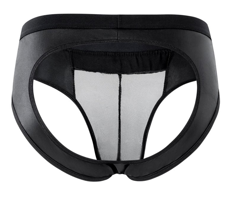 Sexy Faux Leather Splice Mesh Backless Thong Panties Men's Briefs Underwear Lingerie G-String Elastic Underpants