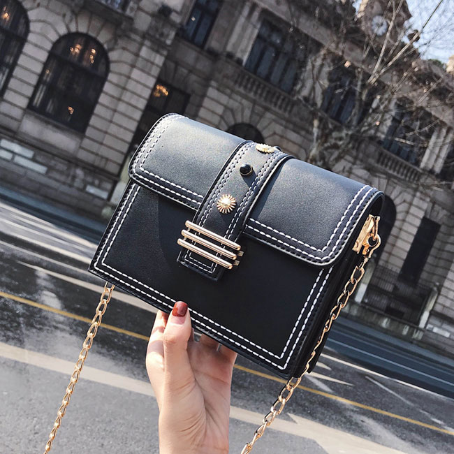 Leisure Chain Messenger Bag Square Lady Single Button Shoulder Bag