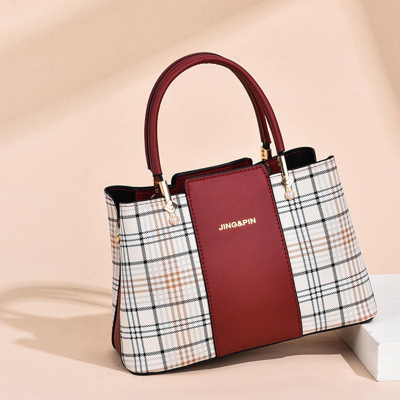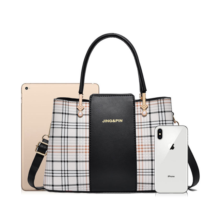 Fashion Lattice Printing Tote Handbags For Mom Large Capacity Gird Shopping Shoulder Bags Ladies Purse Leather Crossbody Bags