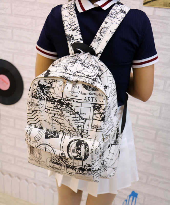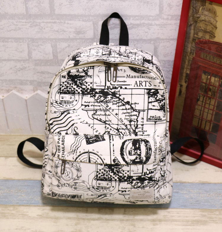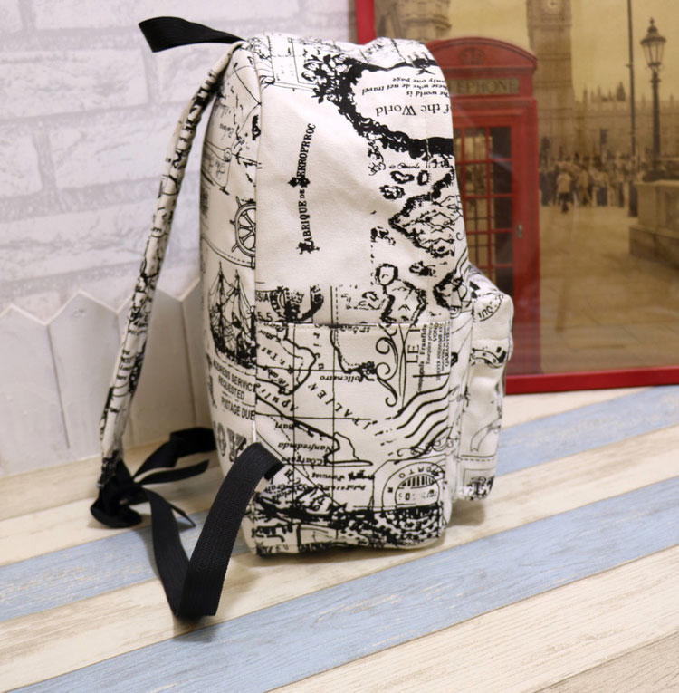 Harajuku Style Canvas Graffiti Map Casual Backpack &School Bag