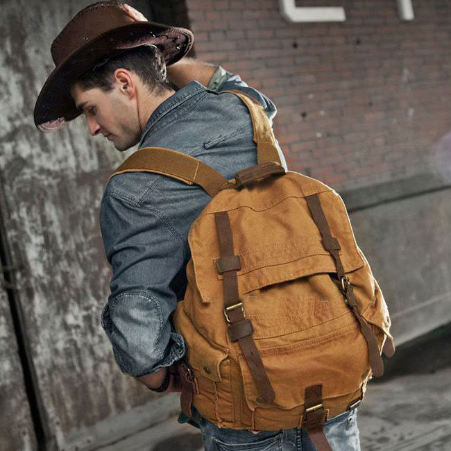 Retro Hiking Outdoor Rucksack Thick Canvas Schoolbag Backpack Large Travel Backpack