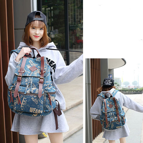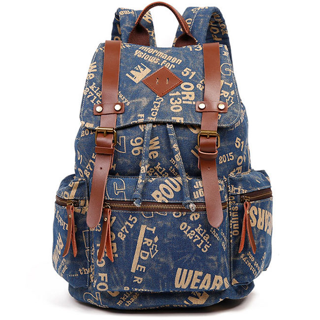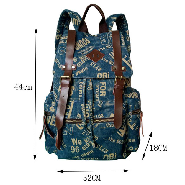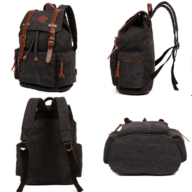 Retro Climbing Rucksack Large PU Belt Canvas School Backpack Outdoor Backpacks