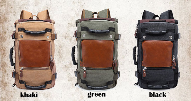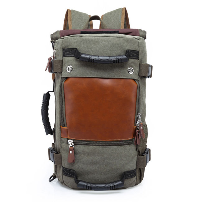 Retro Drum Travel Multi-function Shoulder Bag Large Outdoor Cylindrical Canvas Backpack