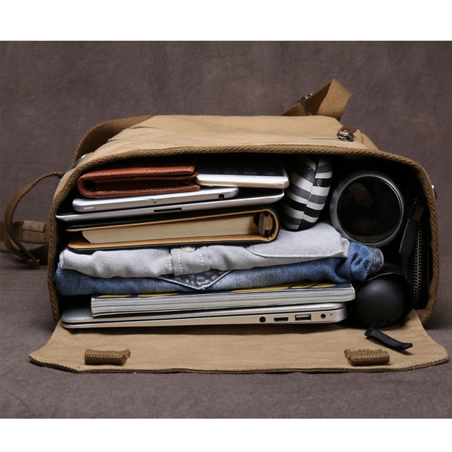 Retro Double Strap School Bag Man Travel Rucksack Canvas Large Outdoor Backpack