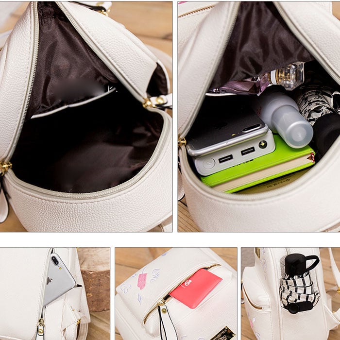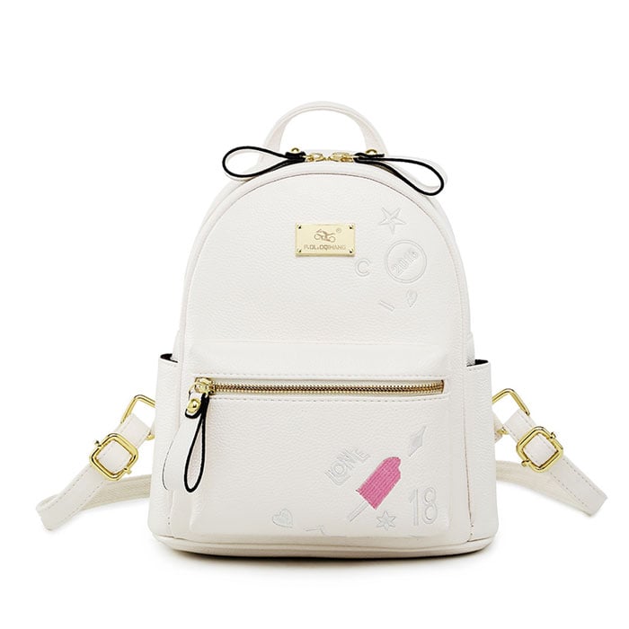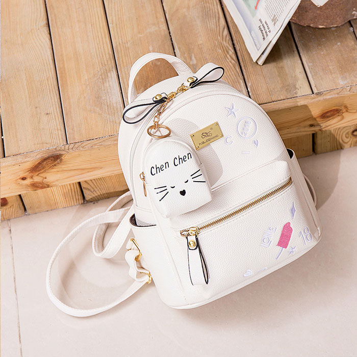 Cute Mini Embroidery Ice-Cream Love Cartoon Soft PU Small Student Backpack