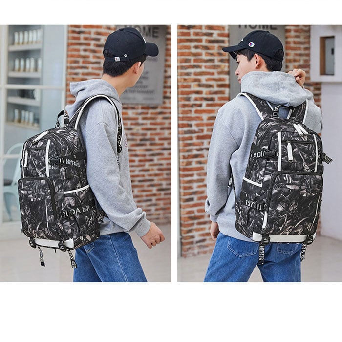 There are USB charging port on the side of the backpack.