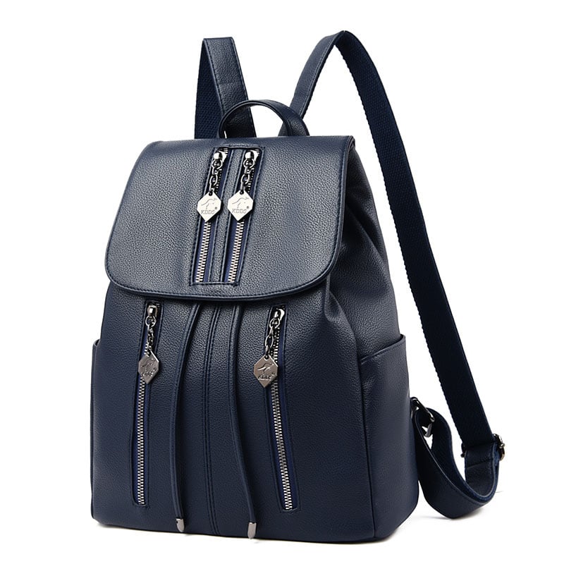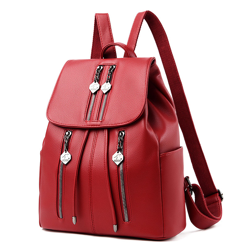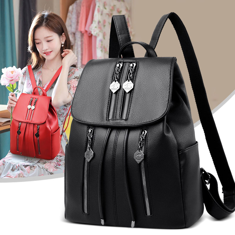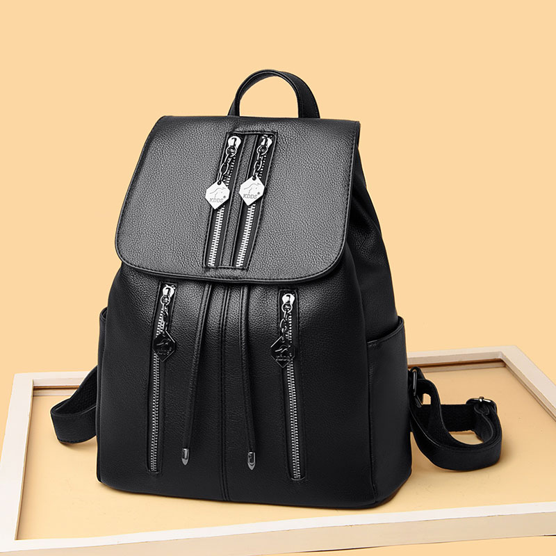 Fashion Four Vertical Zippers Soft PU Leather College Daypack Girl's Bag Women Backpack
