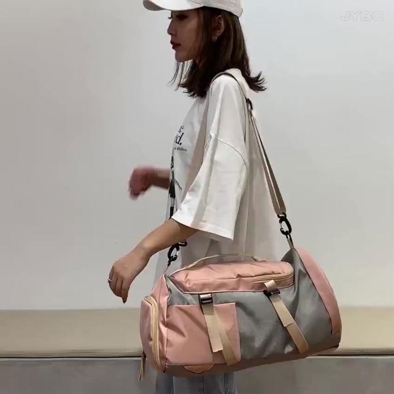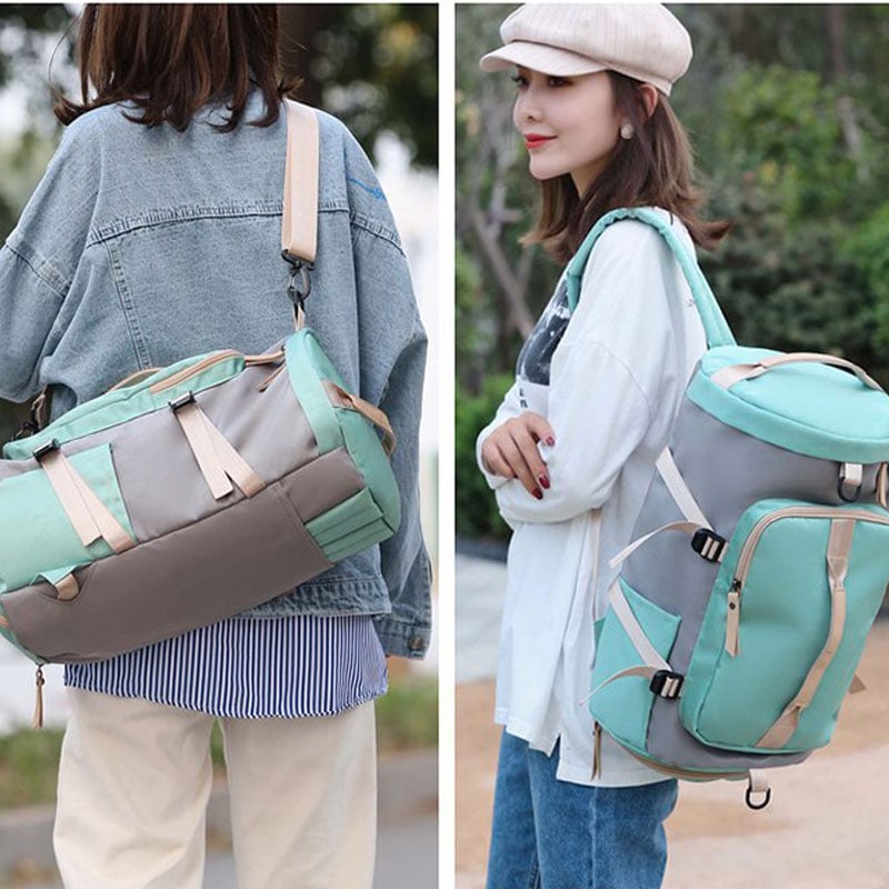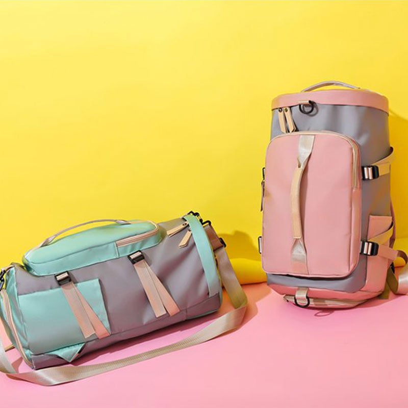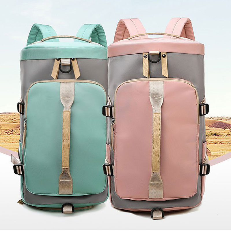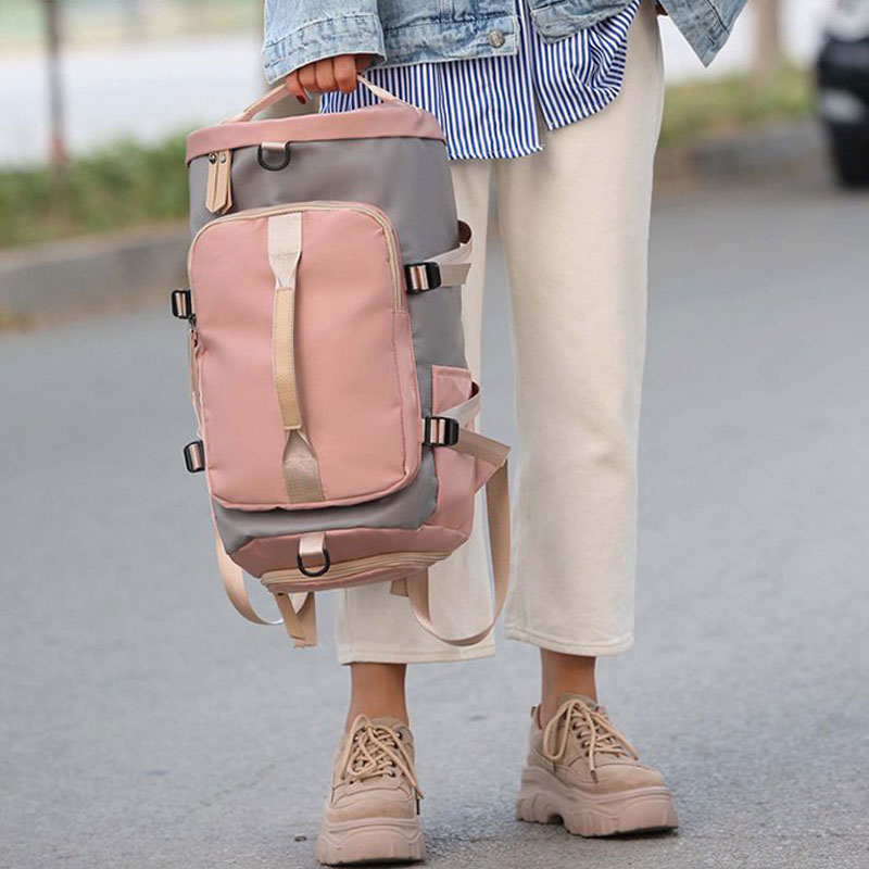 Leisure Nylon Gym Bag Travel Luggage Bag Multifunctional Sport Athletic Water-proof Travel Bag Lightweight Contrast Color Barrel Backpack