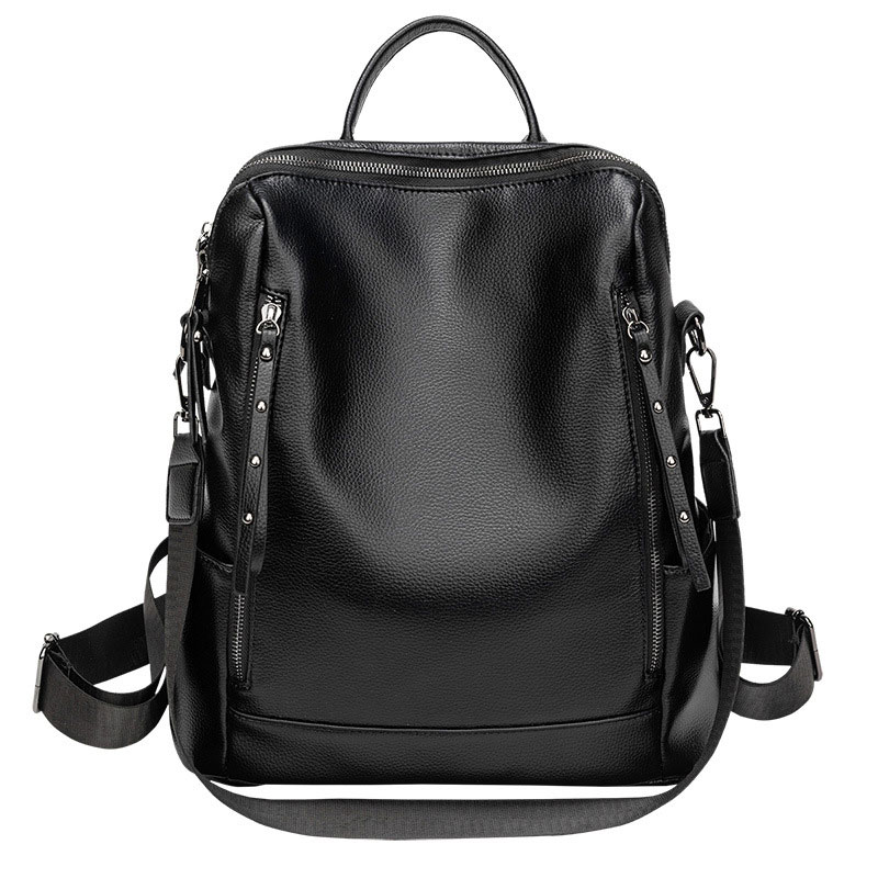 Leisure Double Vertical Zippers Bag Soft PU Leather Multifunction Shoulder Bag School College Backpack For Women
