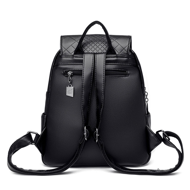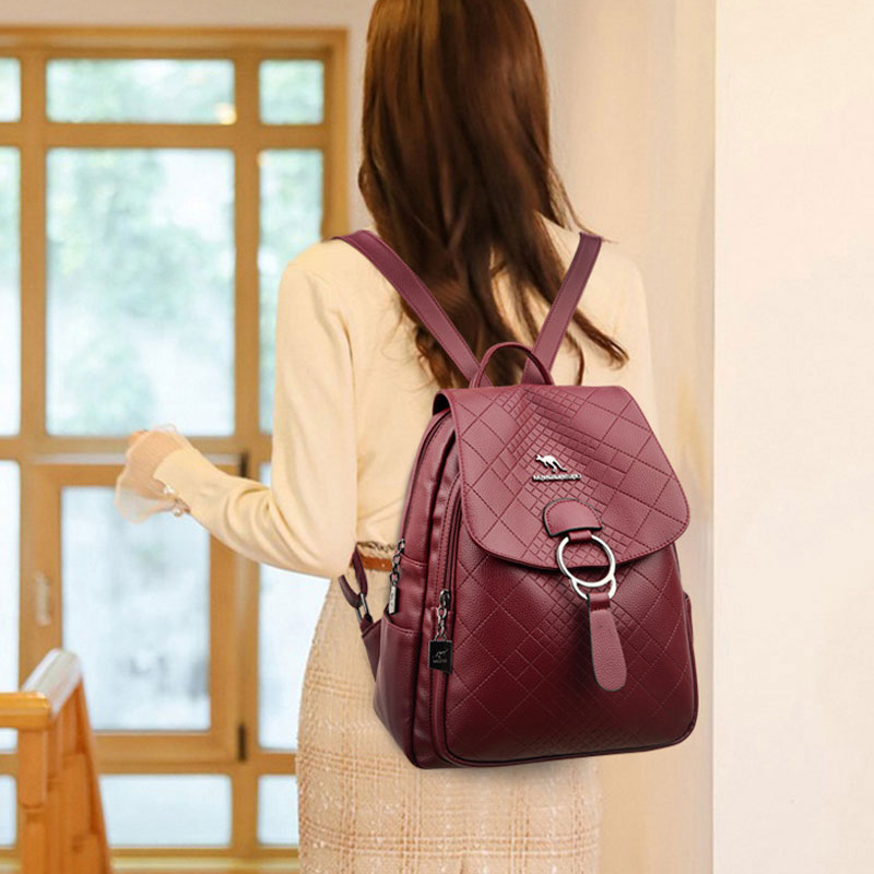 Sheer Kangaroo Grid Metal Ring Buckle Satchel Bags Purse Soft Leather Shopping Women's Backpack