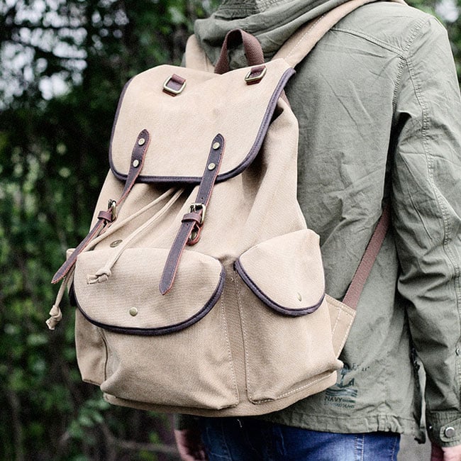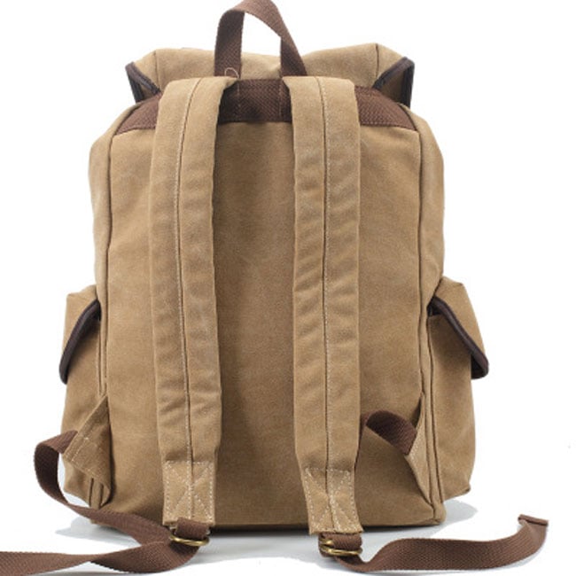 Retro Leather Strap Rucksack Large Bag Thick Canvas Large Travel College Backpack