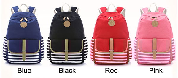 Fashion Simple Stripe Backpack Canvas School Bag Travel Rucksack