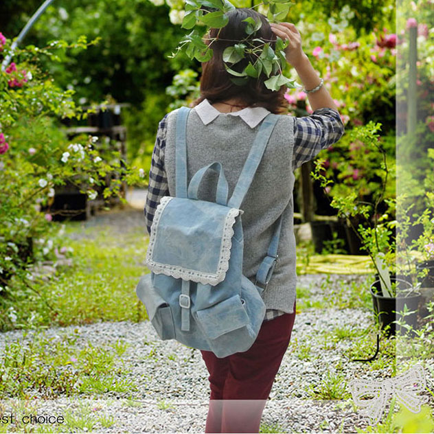 Fresh Lace Denim Cute Mini College Gril's Backpacks