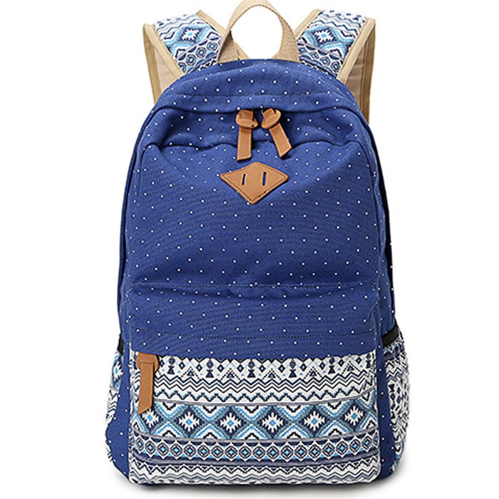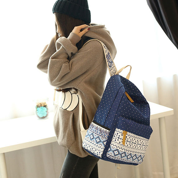 Folk Leisure Polka Dot Rucksack Bohemia Trunk College Canvas Backpack