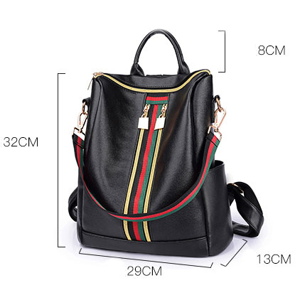 Cute Green Red Stripe Double Zipper Girl's PU Multifunction Handbag Shoulder Bag School Backpack