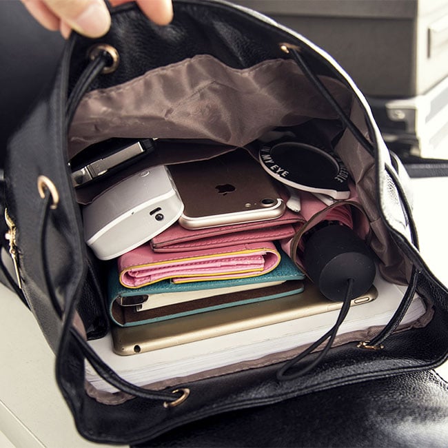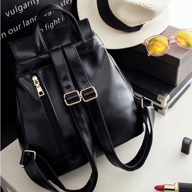 Simple Black PU School Travel Gift Clutch Bag Backpack