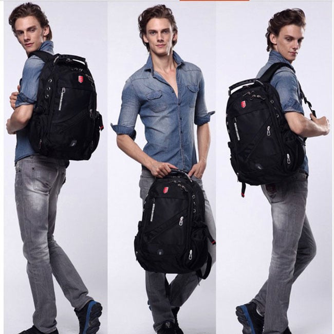 Cool Strong Outdoor Nylon Oxford Bag Waterproof Black Large Multi-functional Camping Men Travel Backpack