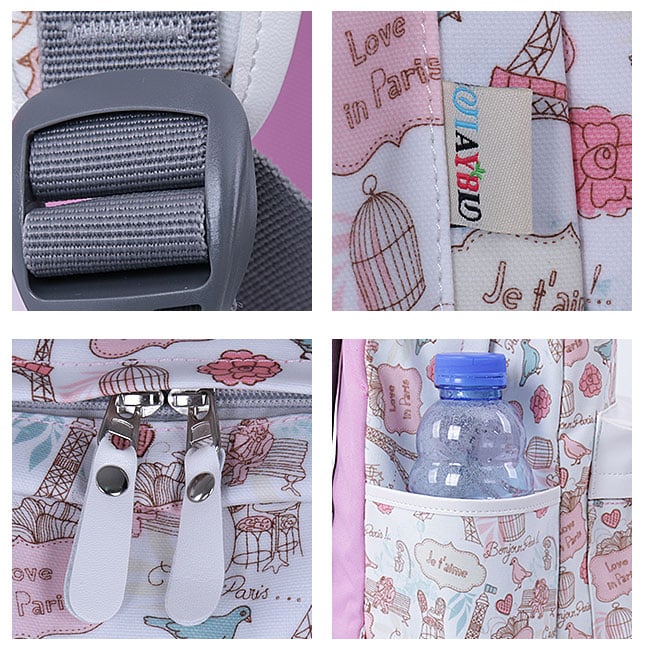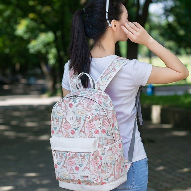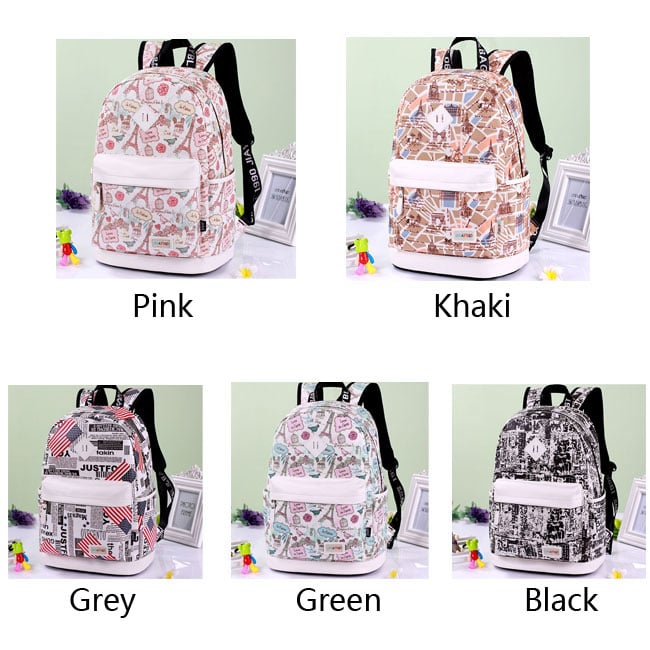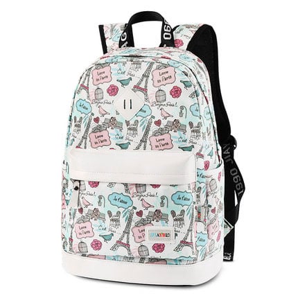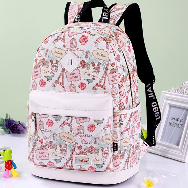 Cute Canvas Travel Bag School Backpack Sweet Cartoon Eiffel Tower School Rucksack