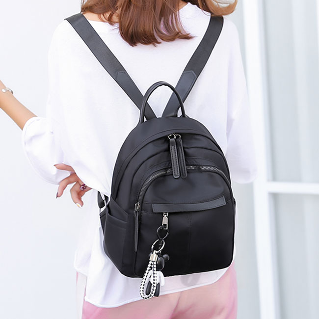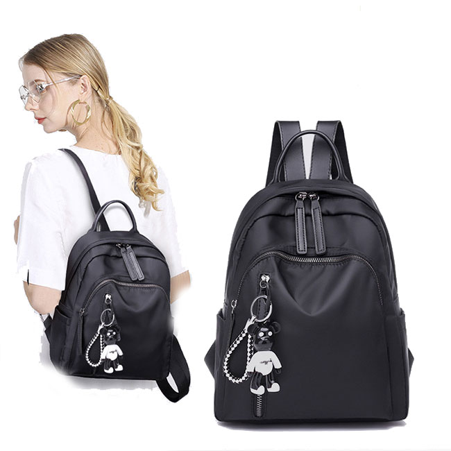 Leisure Pure Black PU Nylon School Bag Student Backpack