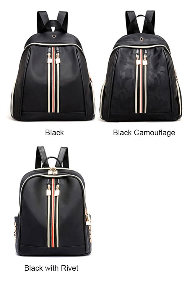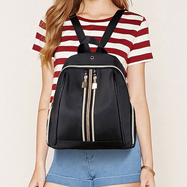 Cool Double Vertical Stripe Black Nylon School Backpack