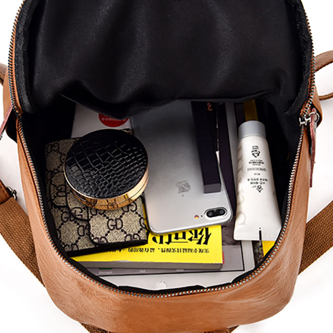 Leisure Soft PU Large Lady Bag British Style Brown Student Backpack