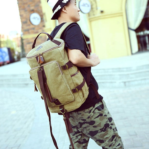 Retro Men's Gym Shoulder Bag Handbag School Canvas Backpack Multifunction Zipper Large Capacity Travel Rucksack