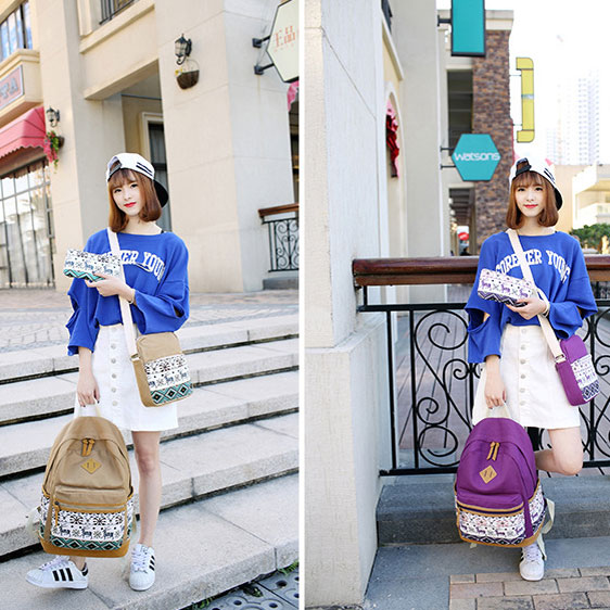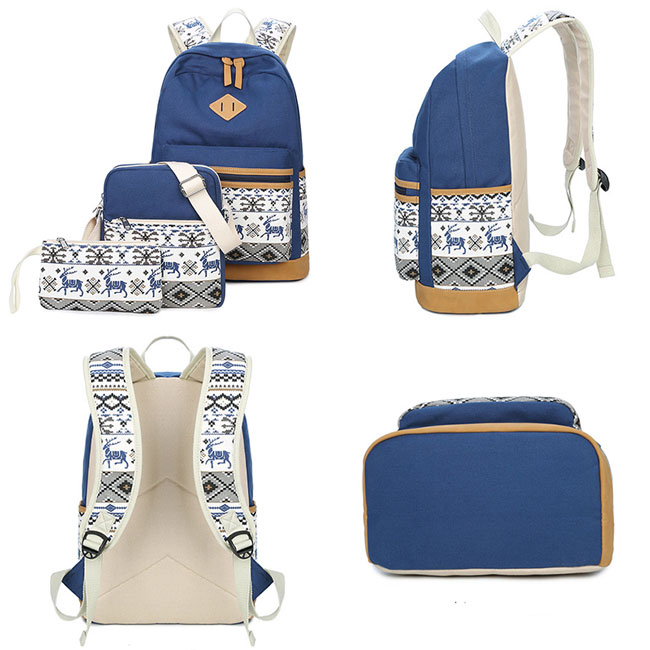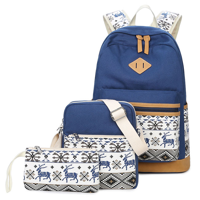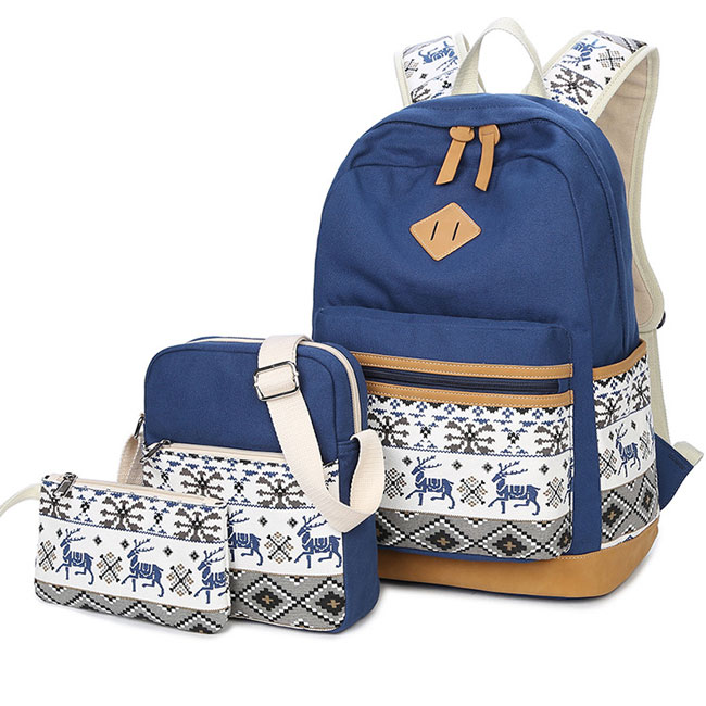 Leisure Totem Girl's Canvas Backpack Deer Embroidery Splicing Large School Bag