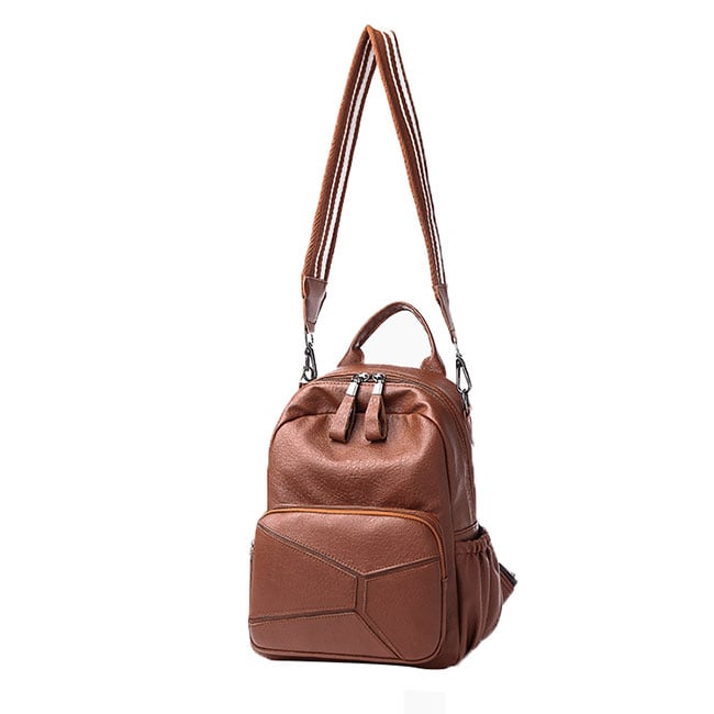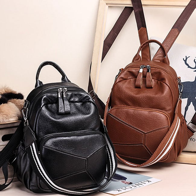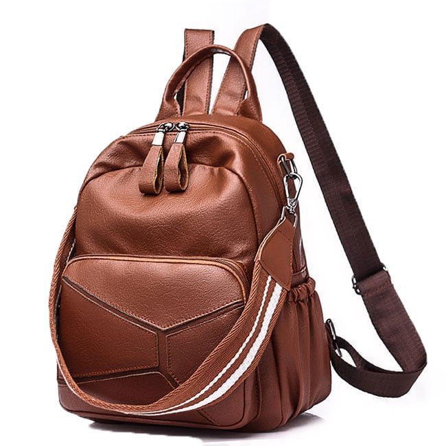 Fashion PU Large Brown Leather Multi-function Shoulder Bag School Backpack