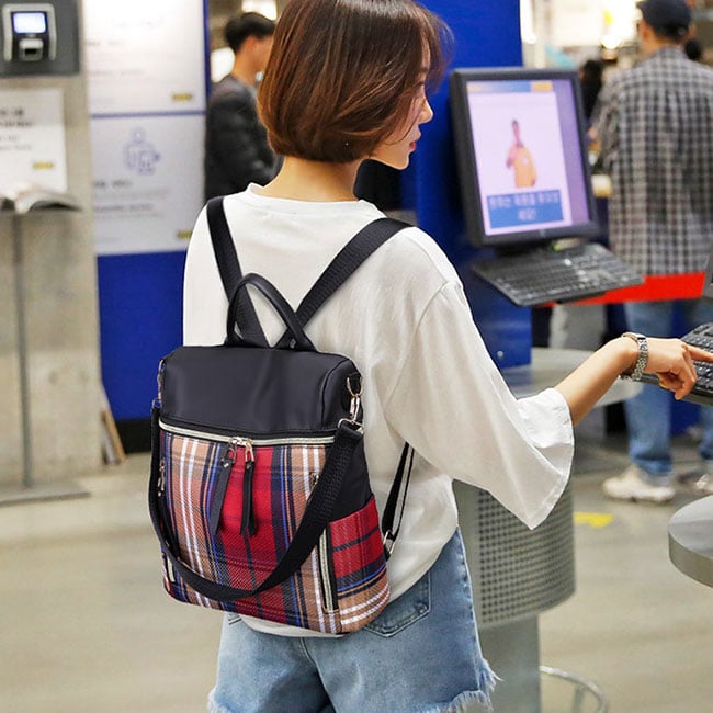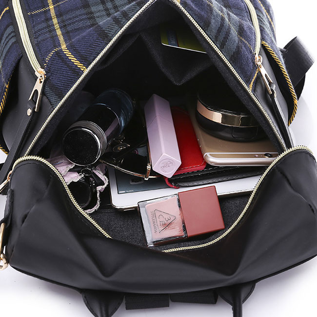 Unique Leisure Contrast Color Multi-function Canvas Backpack British Style Plaid School Bag