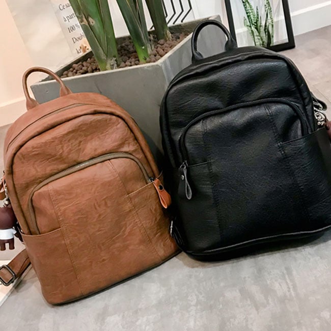 Retro Brown Women's Large PU College Leisure British Style Student Backpack