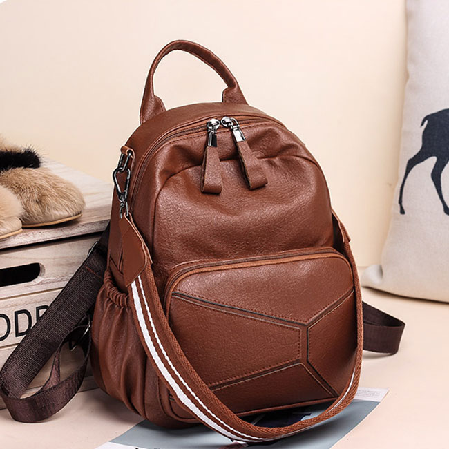 Leisure Leather Multi-function PU Large Brown Shoulder Bag School Backpack