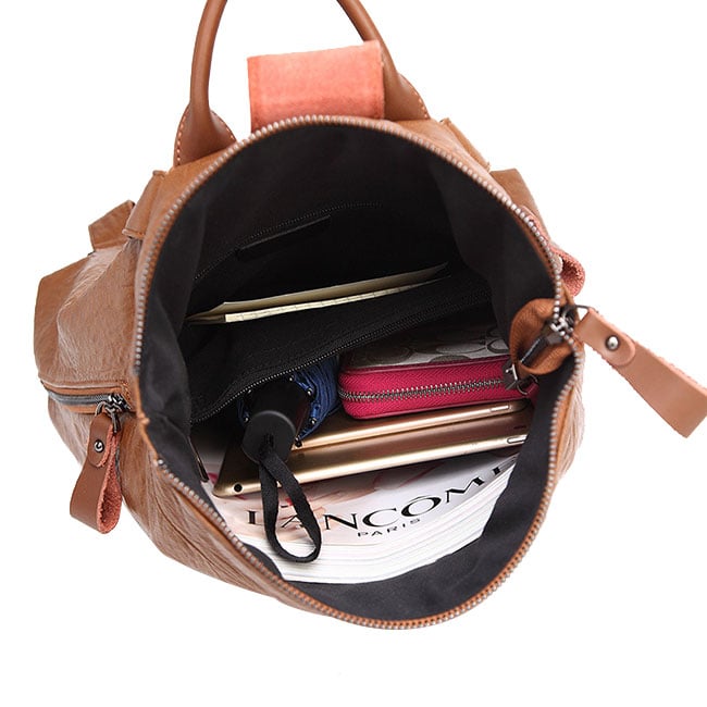 Retro PU College Backpack Brown Multi-function Handbag Rucksack