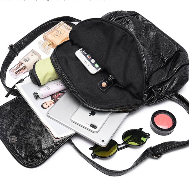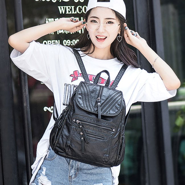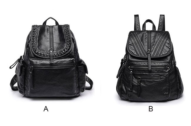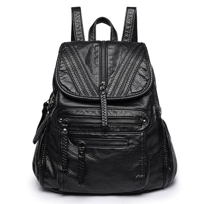Fashion Washed British Style Black PU Soft Leather Weave Leather Backpacks