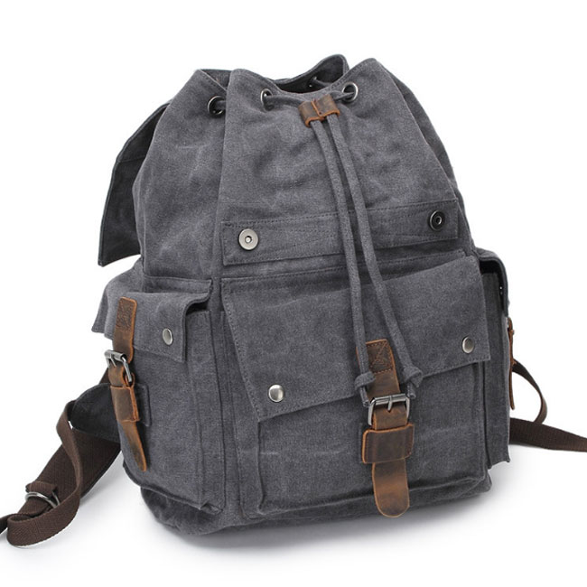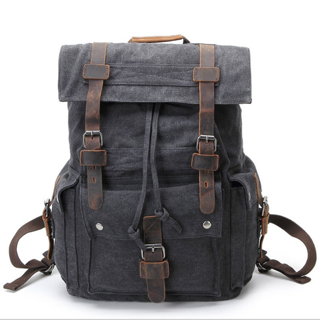 Retro Large School Bag Outdoor Leather Three Buckle Camping Man Travel Backpack