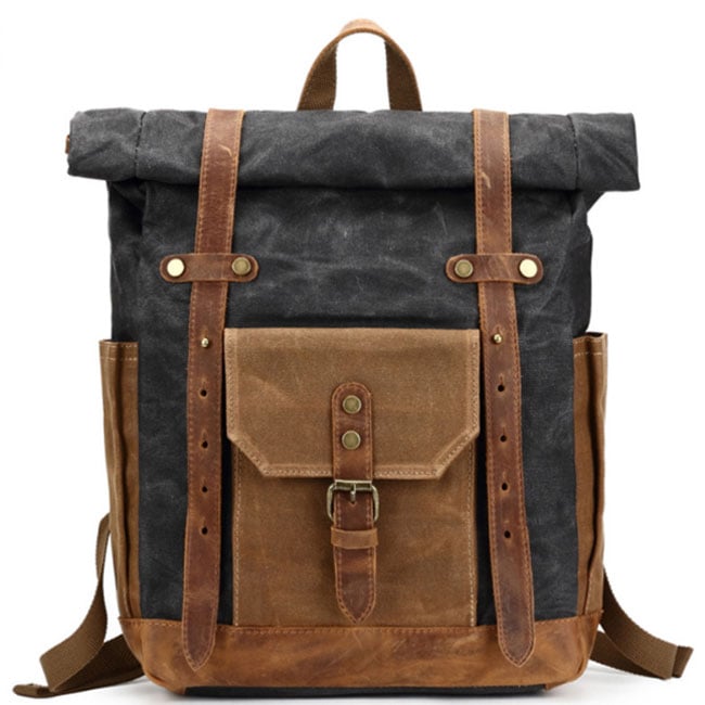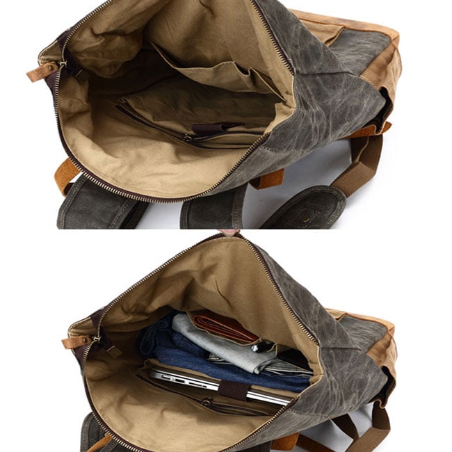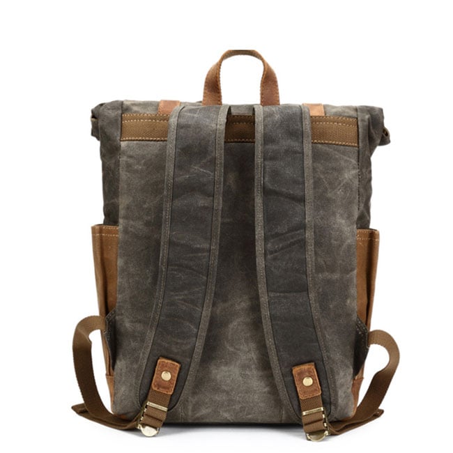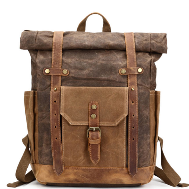 Retro Large Leather Thick Canvas Backpack Outdoor Camping Travel Backpack