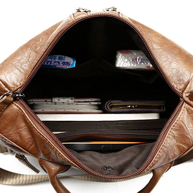 Retro Double Zippers School PU Multi-function Brown Shoulder Bag Casual Student Backpack