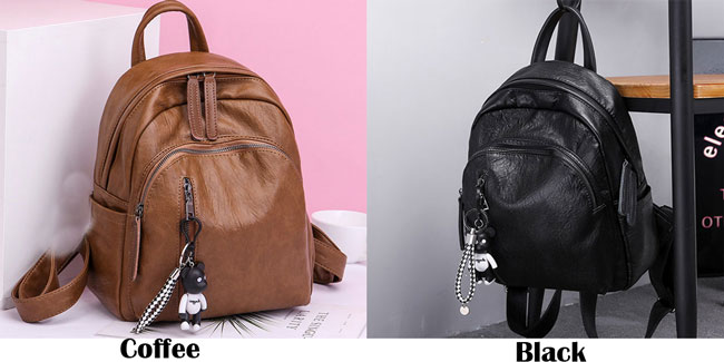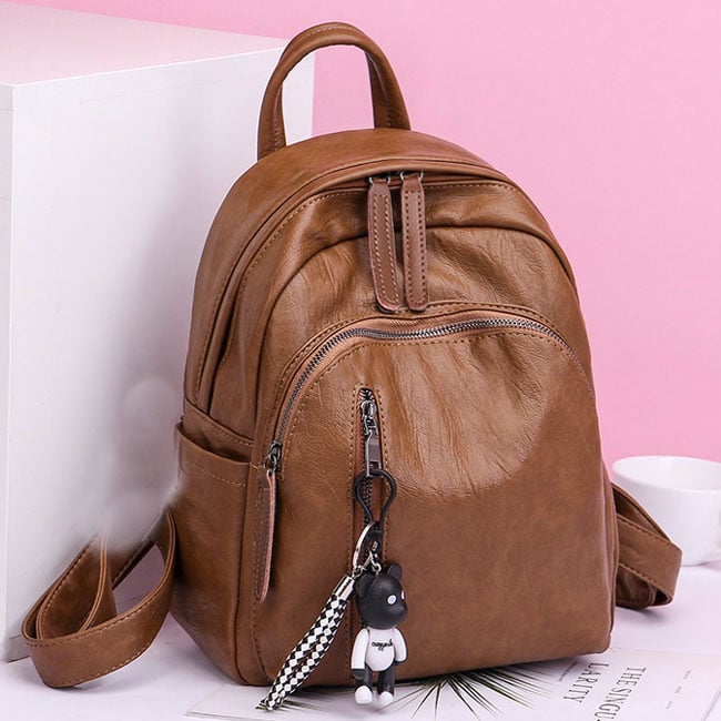Leisure College Lady Waterproof Lightweight Backpack Retro Soft PU Multi Zippers School Bag