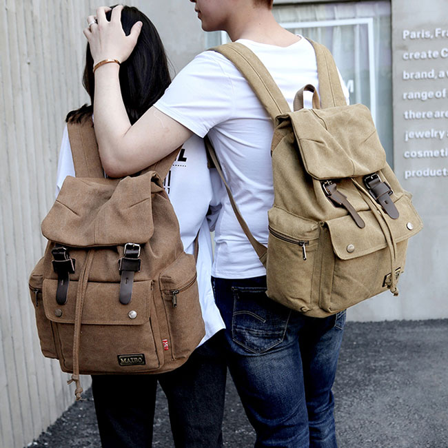 Retro Men's Travel Bag Large Canvas School Camping Backpack Student Rucksack