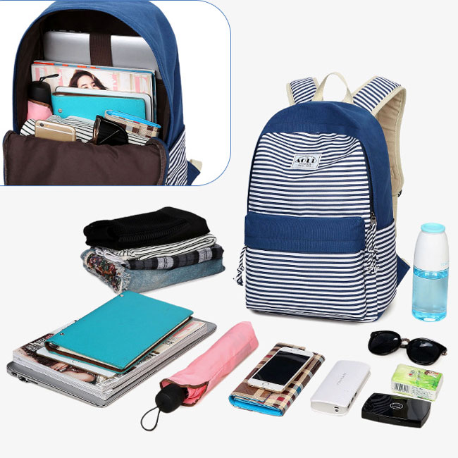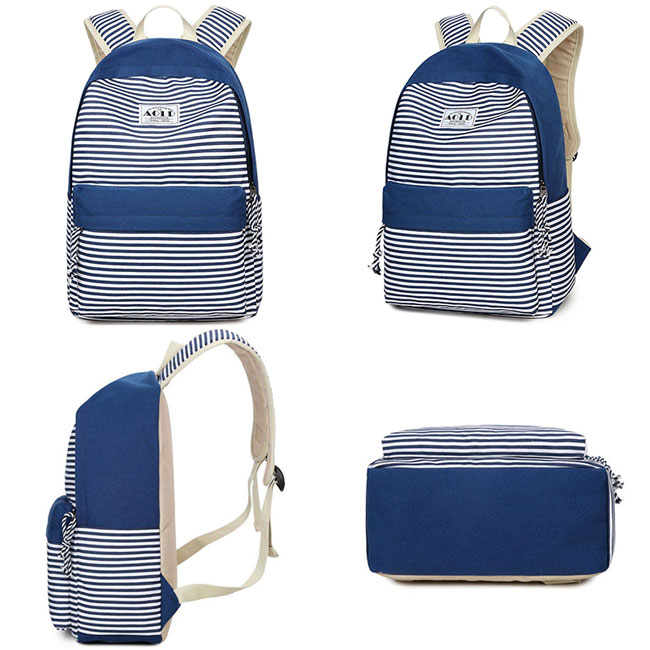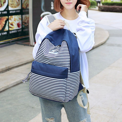 Leisure Travel Striped Canvas Girl's Stripes Designed Student Bag School Backpack