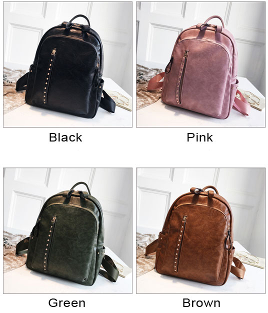 Retro Vertical Zipper Large PU School Backpack Rivet Student Bag