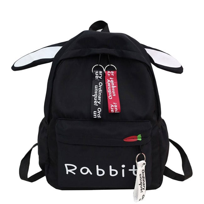 Cute Cat Letter Pure Color Student Bag Large Kitten Ear Decor Canvas School Backpack