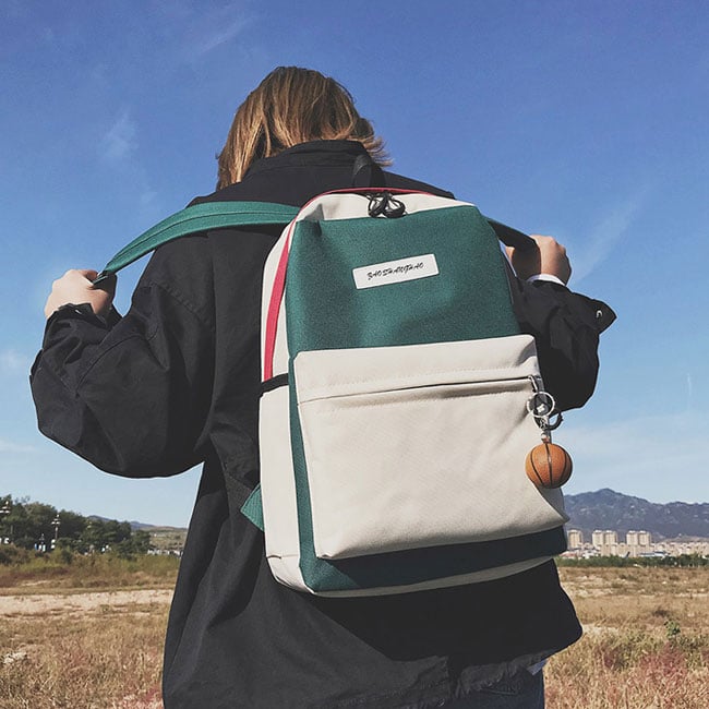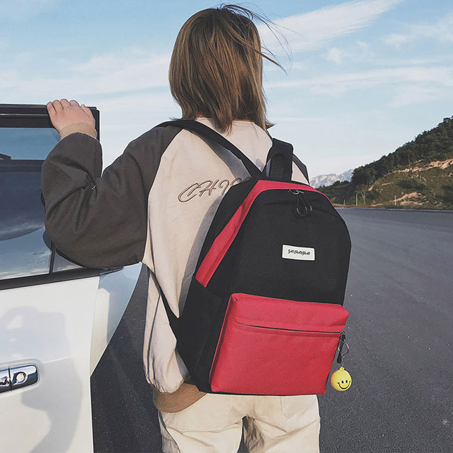 Fashion High School Rucksack Student Bag Large Contrast Color Canvas Backpack