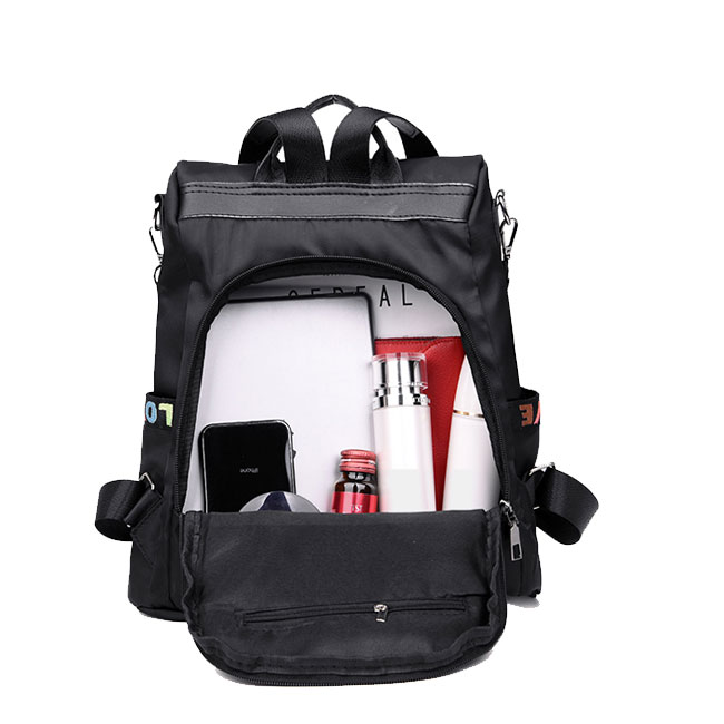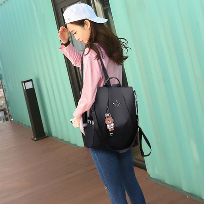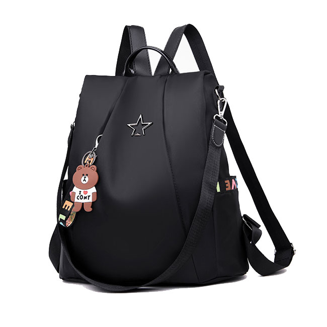 Leisure Black High School Bag Multi-function Shoulder Bag Star Button Oxford Large Backpack