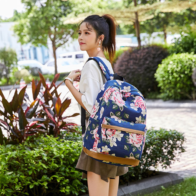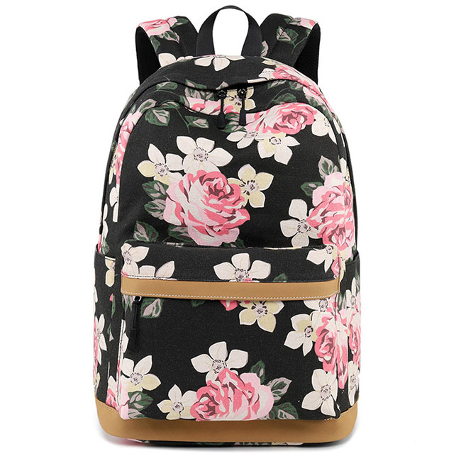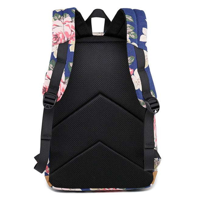 Fashion Floral USB Interface Rose Canvas Laptop Student Backpack Large Flower Middle School Bag