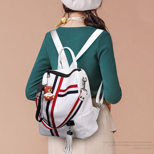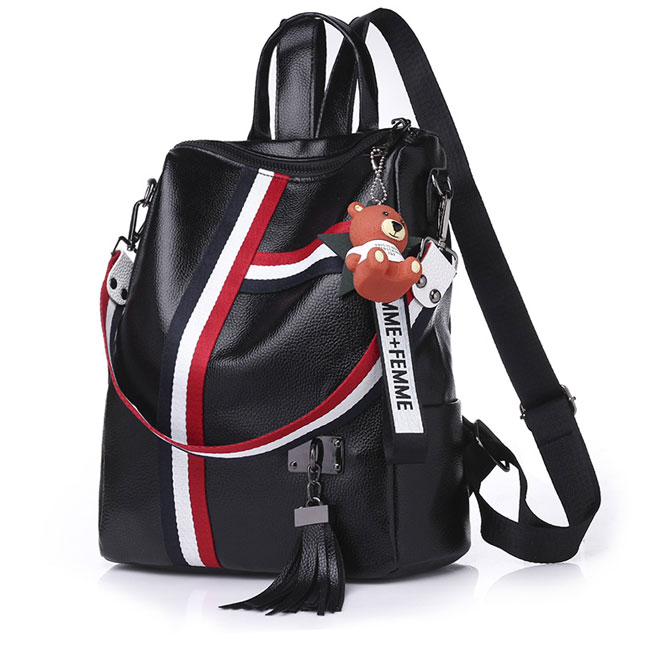 Leisure Multi-function Shoulder Bag Contrast Color Square PU Backpack Stripe Tassel School Bag